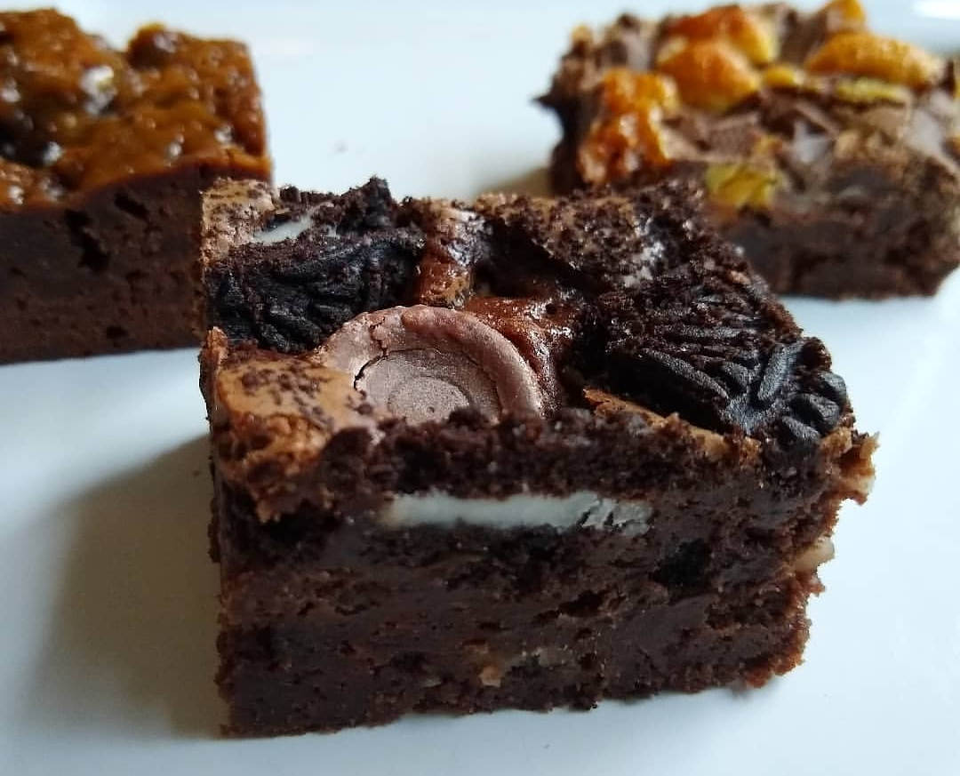 Vegan — We have a very loyal vegan brownie following! At the moment we offer vegan BOB, Mint choc, Chocolate orange, Peanut butter, Triple nut choc, Toasted almond, Walnut, Choco hazelnut and Choc cherry. All baked to order so send us a message if you’re interested.