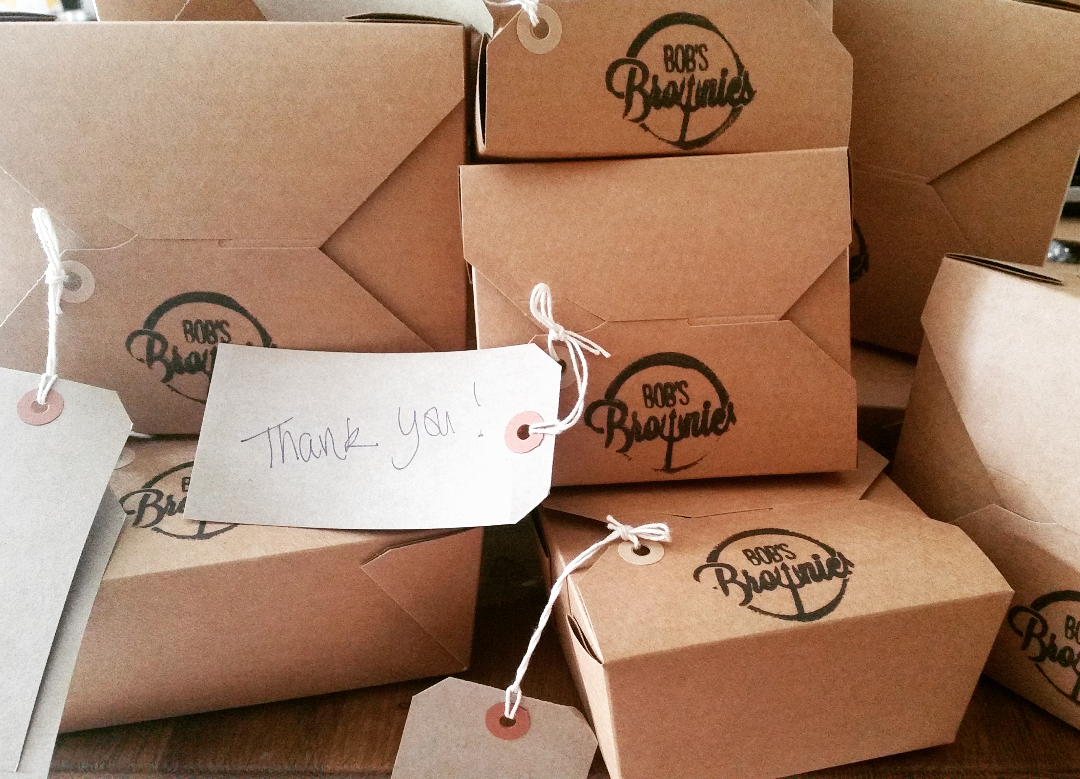 Small boxes (8 brownies) are £7, medium boxes (12 brownies) are £10, large boxes (16 brownies) are £12 and our Gigantaboxes (36 brownies – great for parties.. or brownie hunger!) are £25. You can mix any available varieties in a box. All brownies will be ready to collect from 4pm Thursday from our North Swindon address. Otherwise we can mail all boxes (except Gigantaboxes) for £4.50 P&P (1st class post) or £5.50 (1st class signed for) to UK mainland addresses (we can add a message to your box if you like too). Either email us or message us on Facebook to order. It’s worth doing this as soon as possible as we only make a limited amount per week; When they’re gone… they’re gone! More info on the ordering process can be found in our FAQ page.