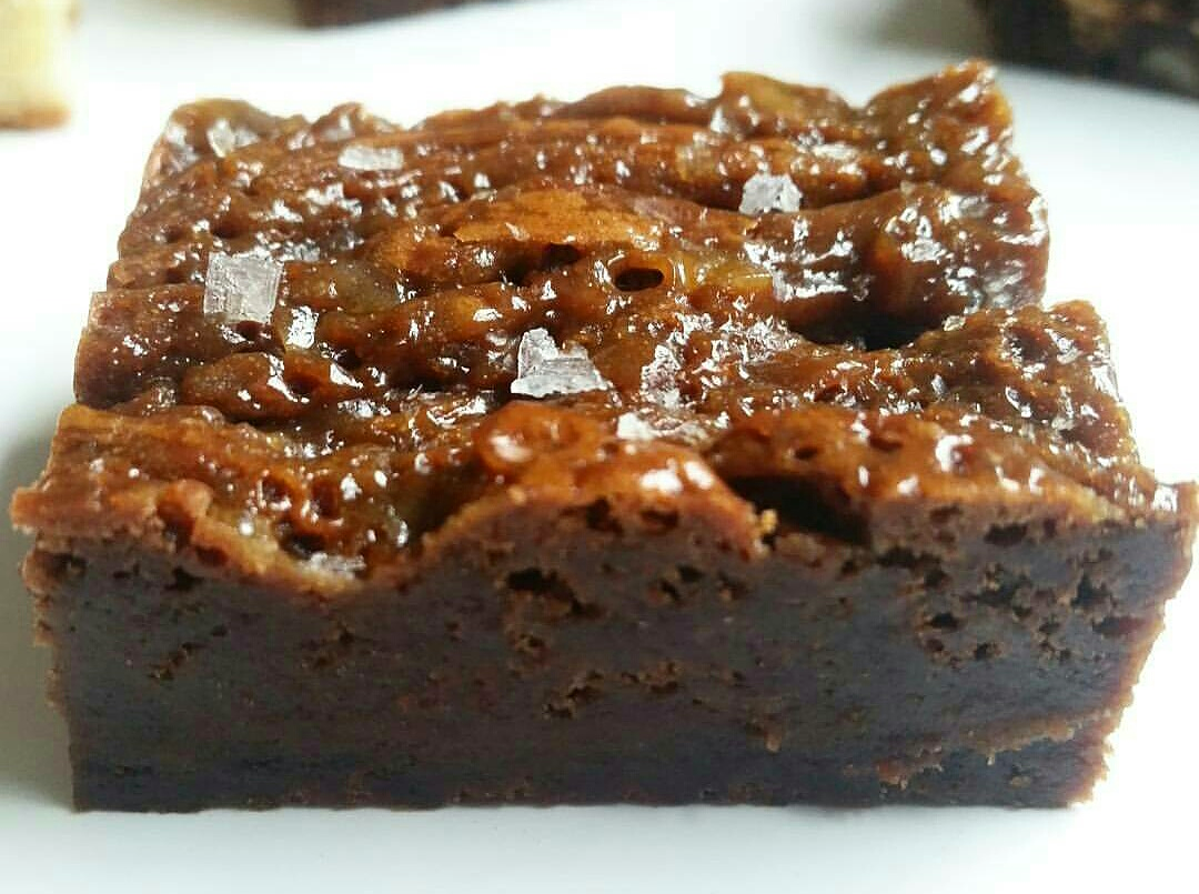 Sea salted caramel running through and over a BOB. Topped with an extra sprinkle of sea salt flakes. Chewy, gooey, sweet and salty goodness.