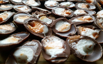 Crème egg — Our classic, fudgy BOB baked with a halved Cadbury’s mini crème egg, smothered with a layer of our own recipe crème egginess, then finished with rich dark chocolate.